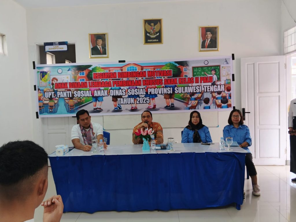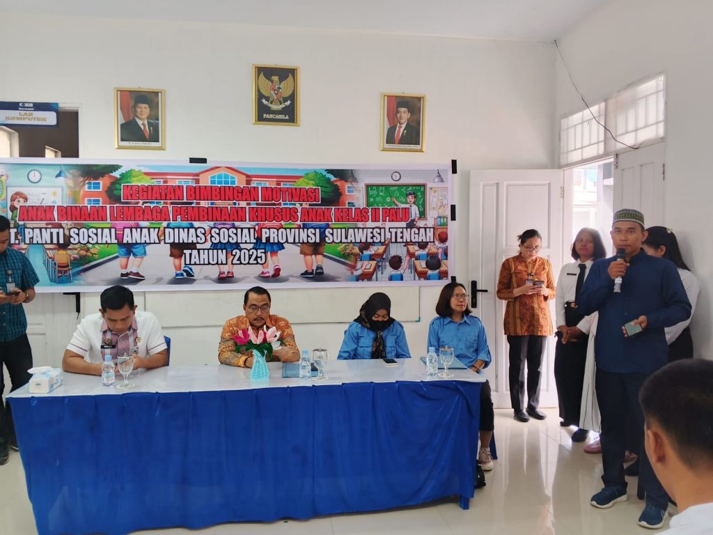 Palu (29/11) — UPT Panti Sosial Anak, Dinas Sosial Provinsi Sulawesi Tengah, menyelenggarakan Kegiatan Bimbingan Motivasi bagi Anak Berhadapan dengan Hukum (ABH) di Lembaga Pembinaan Khusus Anak (LPKA) Kelas II Palu. Kegiatan ini merupakan implementasi nyata komitmen Pemerintah Provinsi Sulawesi Tengah dalam mendukung Program “9 BERANI”, khususnya Berani Sejahtera, yang menekankan pemenuhan hak-hak dasar bagi seluruh masyarakat termasuk kelompok rentan dan anak yang memerlukan perlindungan khusus.